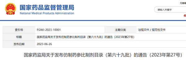 6月26日,国家药品监督管理局仿制药质量和疗效一致性评价专家委员会审核确定,国家药监局发布《仿制药参比制剂目录(第六十九批)》。
