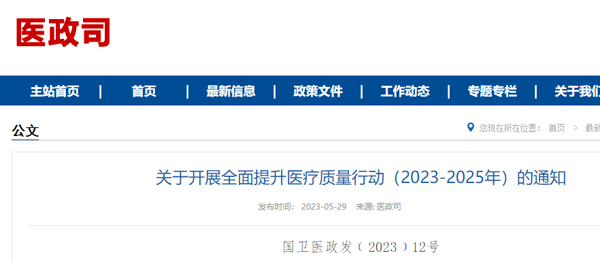 5月29日,国家卫健委、国家中医药局发布《全面提升医疗质量行动计划(2023—2025年)》,在全国开展为期3年的全面提升医疗质量行动,推进持续改进医疗质量、保障医疗安全。