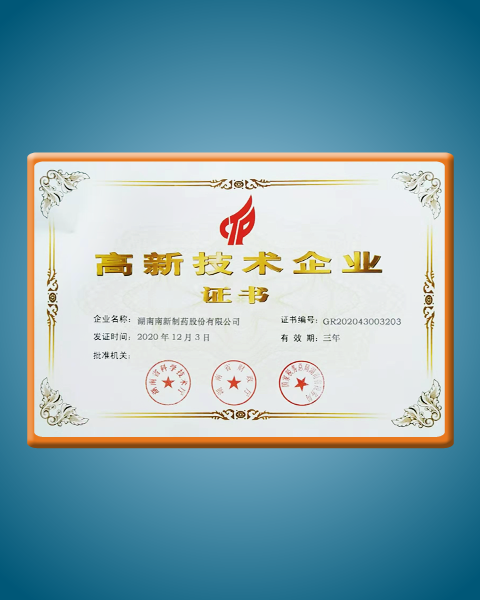 近日,南新制药收到湖南省科学技术厅、湖南省财政厅、国家税务总局湖南省税务局联合颁发的《高新技术企业证书》,有效期三年。公司本次通过高新技术企业认定系原《高新技术企业证书》有效期满后进行的重新认定。