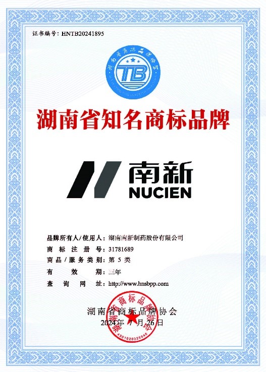 凭借卓越的产品质量和创新研发能力,南新制药获得“湖南省知名商标品牌”的荣誉,对公司而言既是鼓励也是鞭策。未来,公司将继续秉承"以质量求生存,以创新求发展"的经营理念,“求索鼎新,臻善以诚”,不断优化产品结构,提升技术水平,以质量创品牌,以品牌促发展,力争在发展的道路上,为社会提供更多优质的医药产品,为人类的健康事业做出更大的贡献。