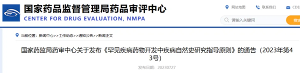 7月27日,国家药监局药审中心发布了《罕见疾病药物开发中疾病自然史研究指导原则》。