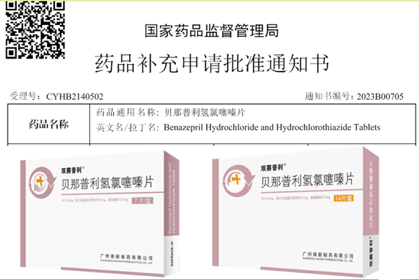 近日,南新制药的双赛普利(贝那普利氢氯噻嗪片)一致性评价申请获得国家药品监督局批准。