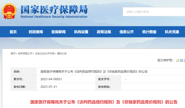 7月21日,国家医保局公布《谈判药品续约规则》及《非独家药品竞价规则》。