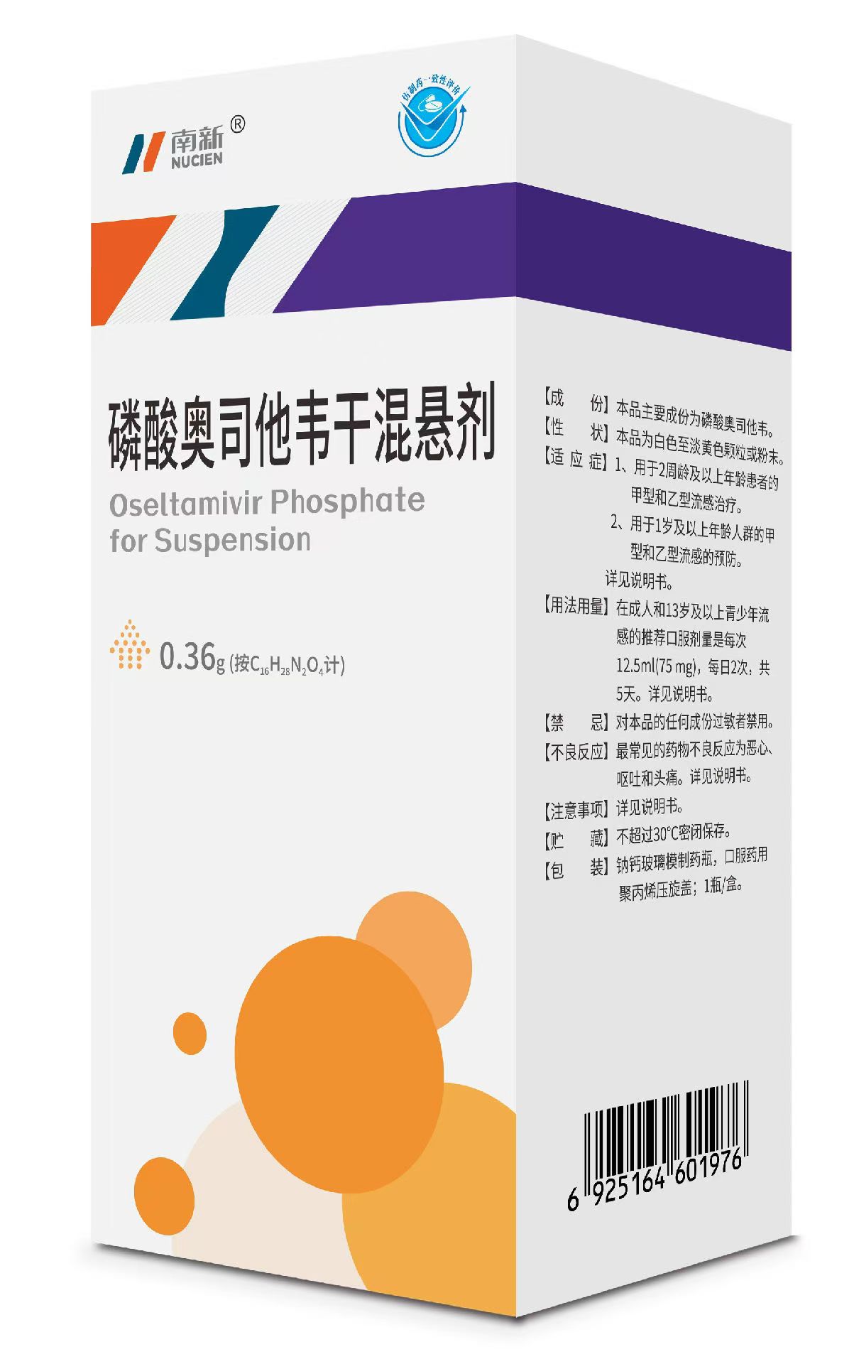 磷酸奥司他韦干混悬剂是南新制药已上市的经典抗流感口服药,属于国家医保乙类品种。相比奥司他韦胶囊和颗粒,干混悬剂在临床应用中有着明显的优势。一是精准给药。干混悬剂更适合儿童或吞咽困难人群,尤其对于2周-1周岁、1周岁-12周岁需要按体重用药的婴幼儿、儿童可实现精准给药。二是适用年龄段更广。胶囊和颗粒的治疗用药年龄是1岁以上,干混悬剂的治疗用药年龄是2周龄以上;胶囊和颗粒的预防用药年龄是13岁以上,干混悬剂的预防用药年龄是1岁以上。