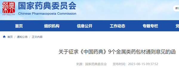 8月15日,国家药典委发布了《关于《中国药典》金属类药包材9个通则征求意见稿》,涉及药用铝箔等包材。本次征求意见为期1个月。