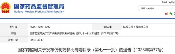 8月17日,国家药监局发布化学仿制药参比制剂目录(第七十一批),涉及药品64个品规,其中包括了帕拉米韦氯化钠注射液100ml:0.15g和100ml:0.3g两个规格。